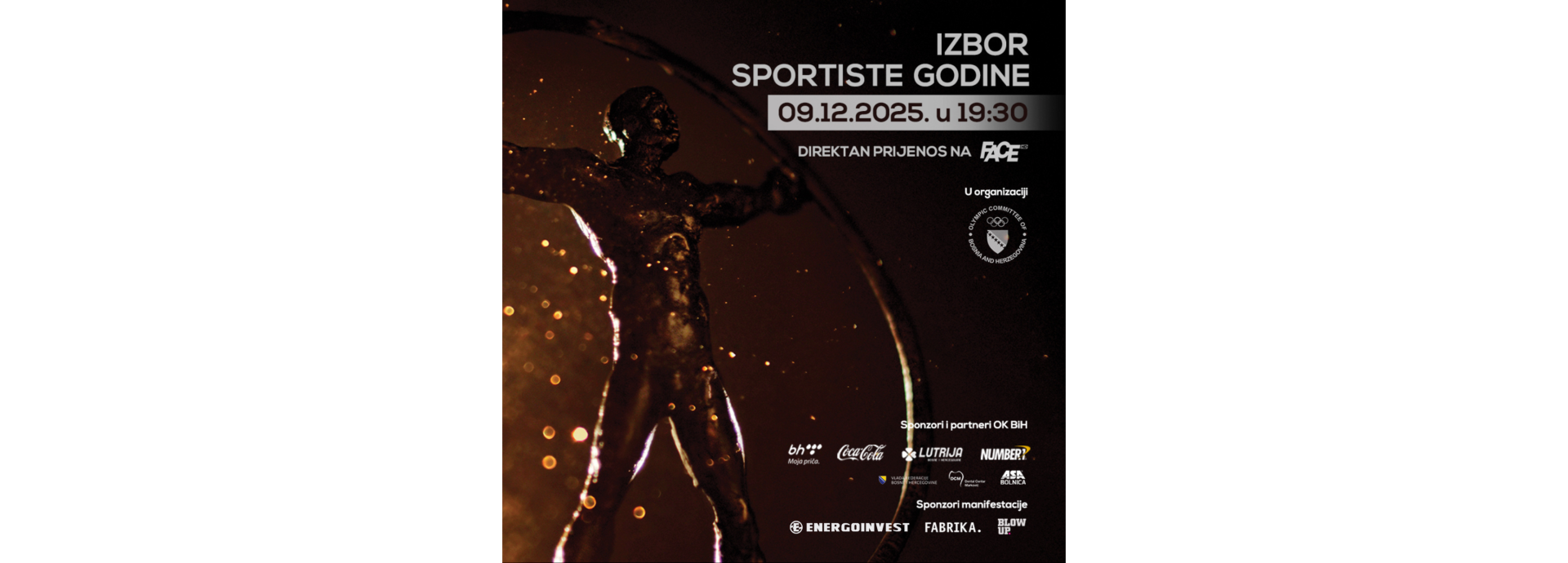 Svečana manifestacija, četrnaesti po redu Izbor sportiste godine u organizaciji Olimpijskog komiteta Bosne i Hercegovine održat će se 9. decembra 2025. godine sa početkom u 19:30h.