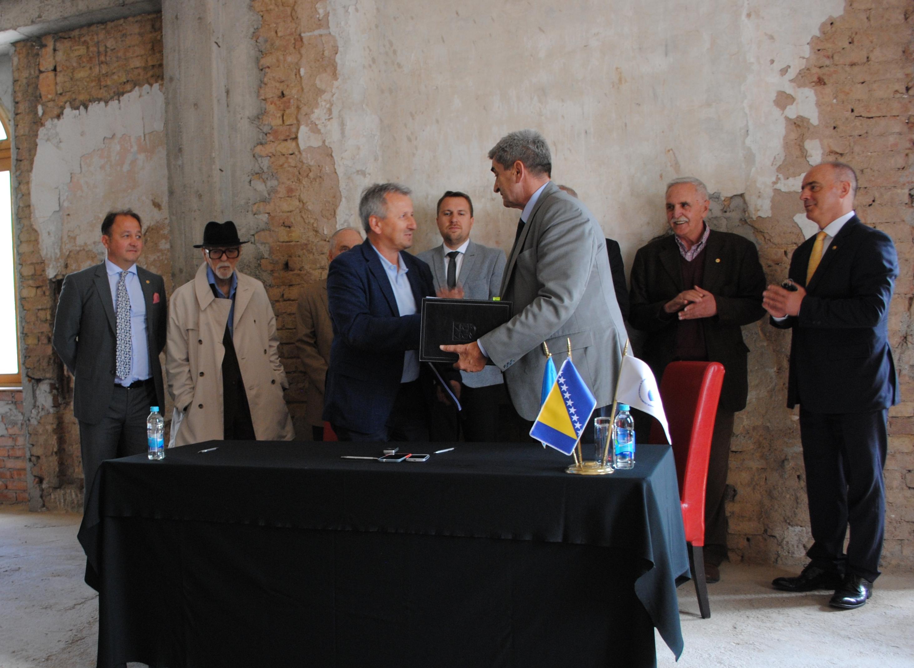 Potpisnici ugovora o obnovi Muzeja su predsjednik Olimpijskog komiteta Bosne i Hercegovine Siniša Kisić i direktor Unigradnje, firme izvođača radova, Mustafa Duraković.