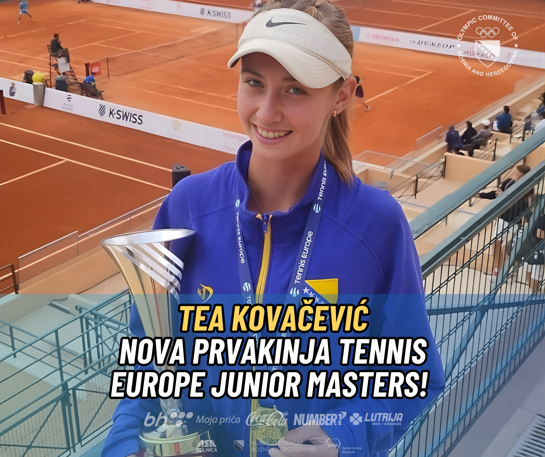 Olimpijska stipendistica za Los Angeles 2028, mlada teniserka Tea Kovačević, odbranila je titulu i osvojila prvo mjesto na prestižnom međunarodnom turniru za najbolje juniorke i juniore Evrope do 16 godina u 2025. godini!