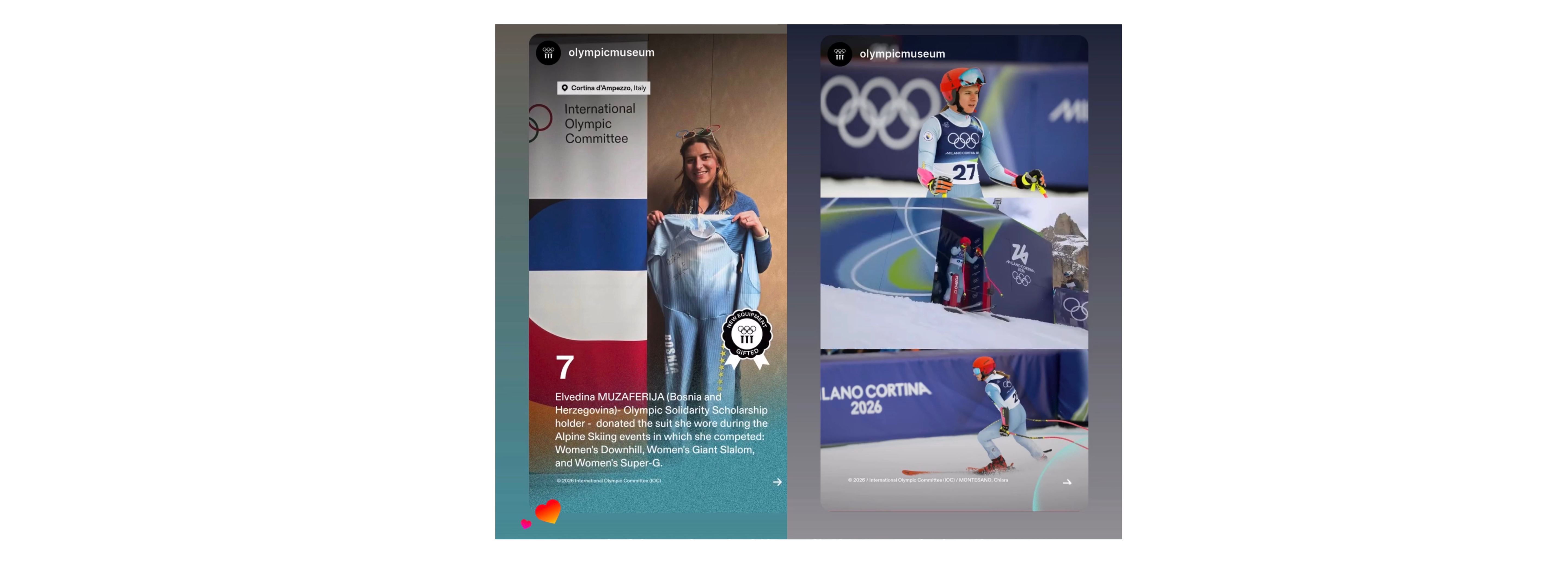 Na poziv Međunarodnog olimpijskog komiteta, Elvedina Muzaferija, naša najbolja skijašica, donirala je svoju opremu koja će ostati u Olimpijskom muzeju u Lozani kao trajni simbol hrabrosti i uspjeha.