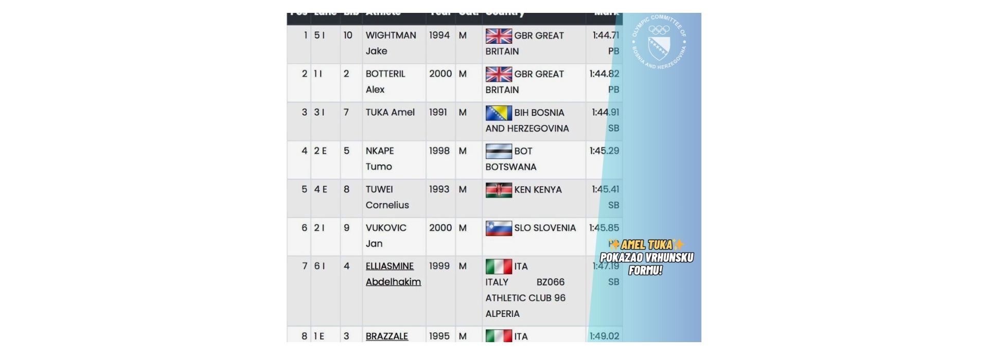 Congratulations to Amel, the coach, the club and the Athletics Federation of Bosnia and Herzegovina.